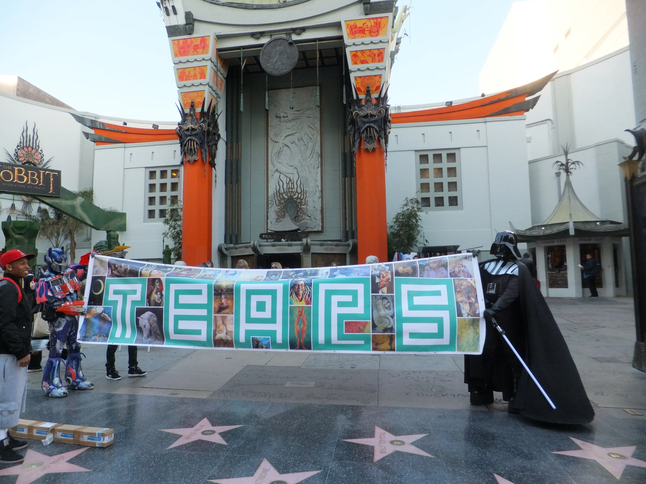 While the artworks "Tears of Happiness" were exhibited in Oxford, we decided to demonstrate their copies at the Hollywood Walk of Fame, California. Lord Vader and a transformer are on our side! :)) People liked it!